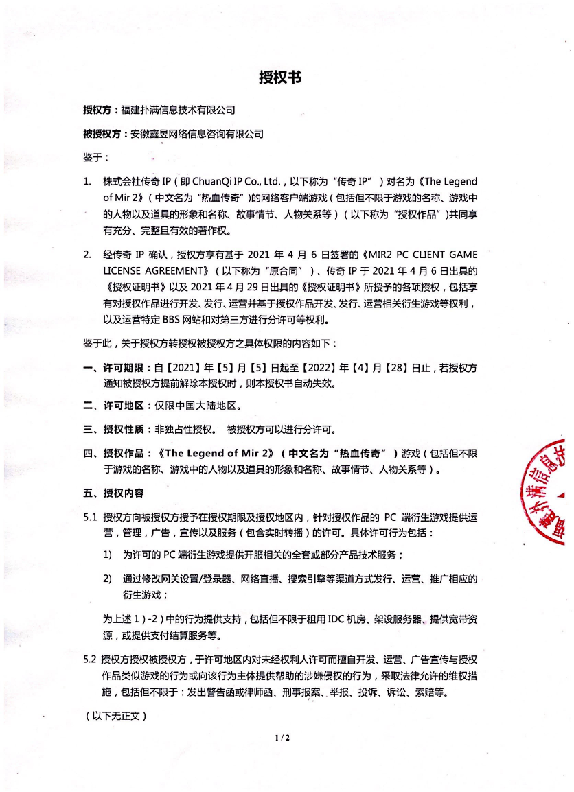 關(guān)于對《The Legend of Mir 2》(熱血傳奇) 衍生品游戲直播的嚴(yán)正聲明